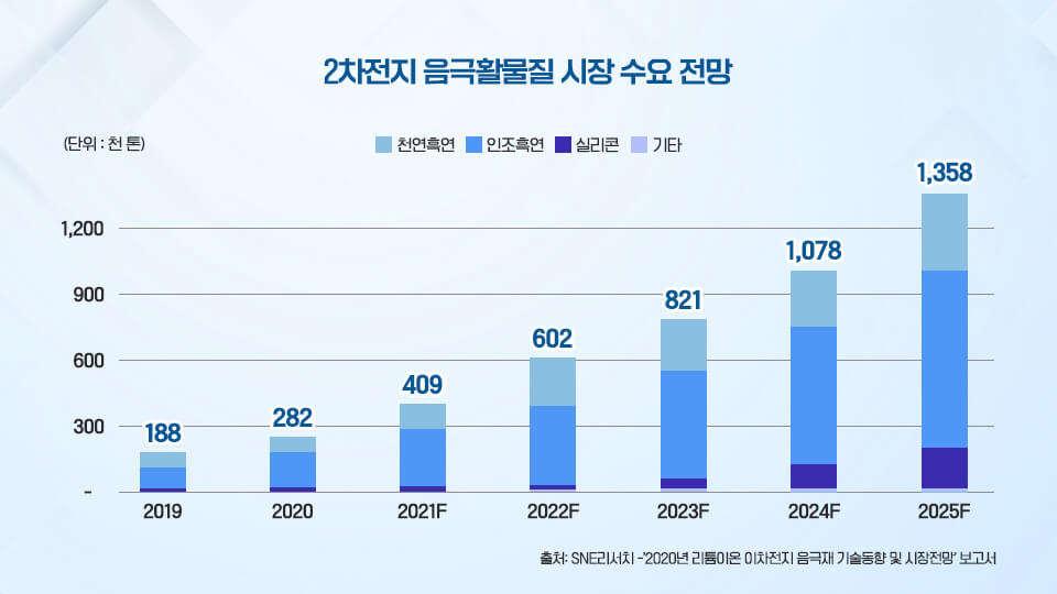 - 천연흑연, 인조흑연, 저팽창 음극재